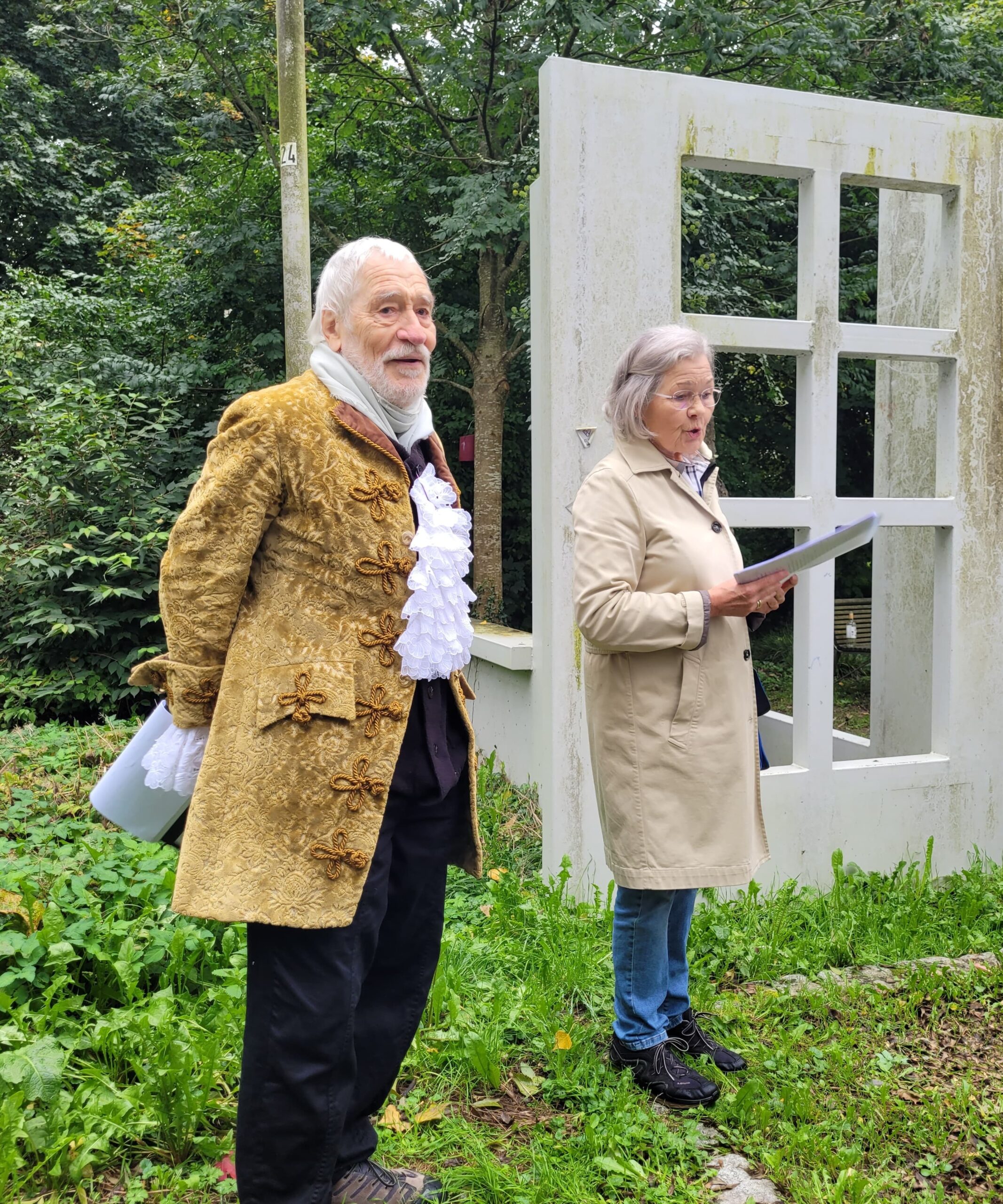 In einem poetischen Spaziergang durch die Natur entfaltete sich anschließend am Samstag das Wechselspiel zwischen Landschaft, Sprache und Musik – ganz im Sinne Wielands. Dieses Spiel wurde Ihnen präsentiert von Barbara Leuchten gemeinsam mit Gunther Dahinten und Roland Boehm.